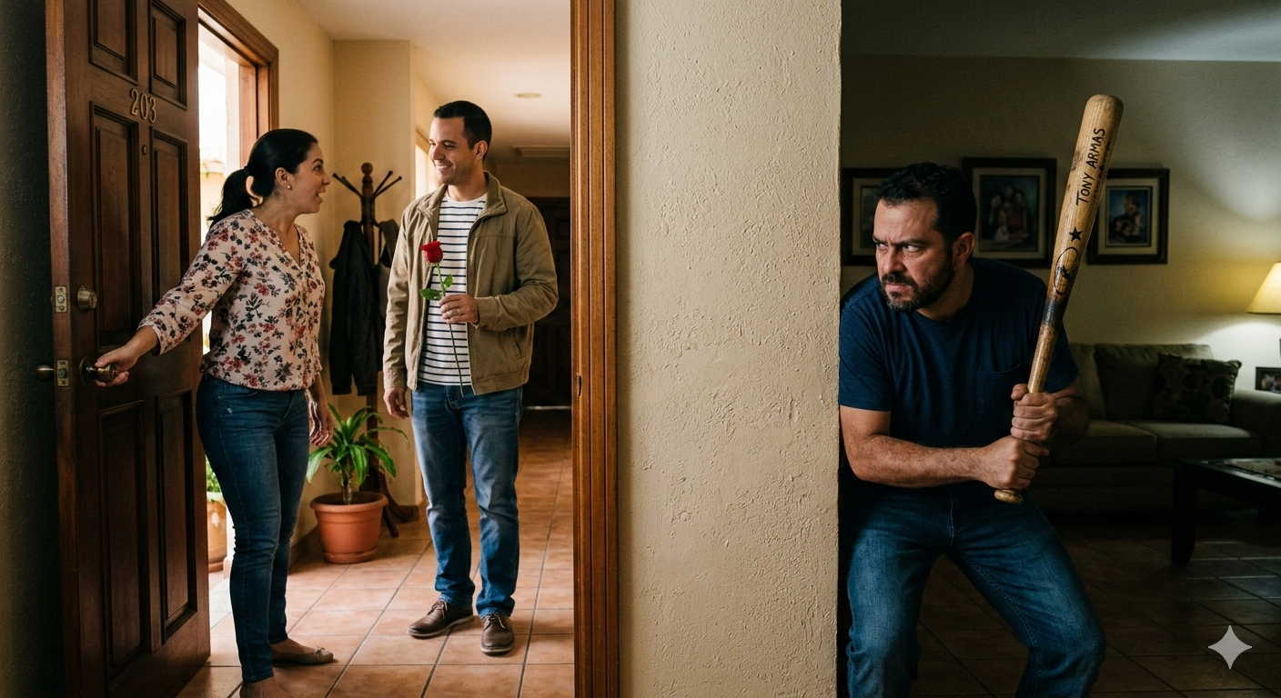 Y dentro en casa de la vecina está el marido