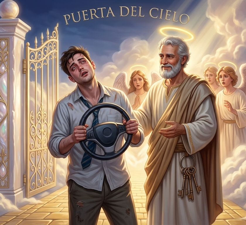 “Comerse” el semáforo, seguir adelante a toda velocidad pese a la luz en rojo, no parece solo una transgresión consciente, sino la culminación inevitable del relato equivocado en el que vive nuestro personaje. Se sugiere que cuando él pregunta sobre lo que le ha pasado, ya está en otra dimensión. Es un muerto frente al cual no queda sino persignarse en mínimo respeto. Es el arribo de muerte como gran misterio, quizás el principal estimulante para el pensamiento filosófico.