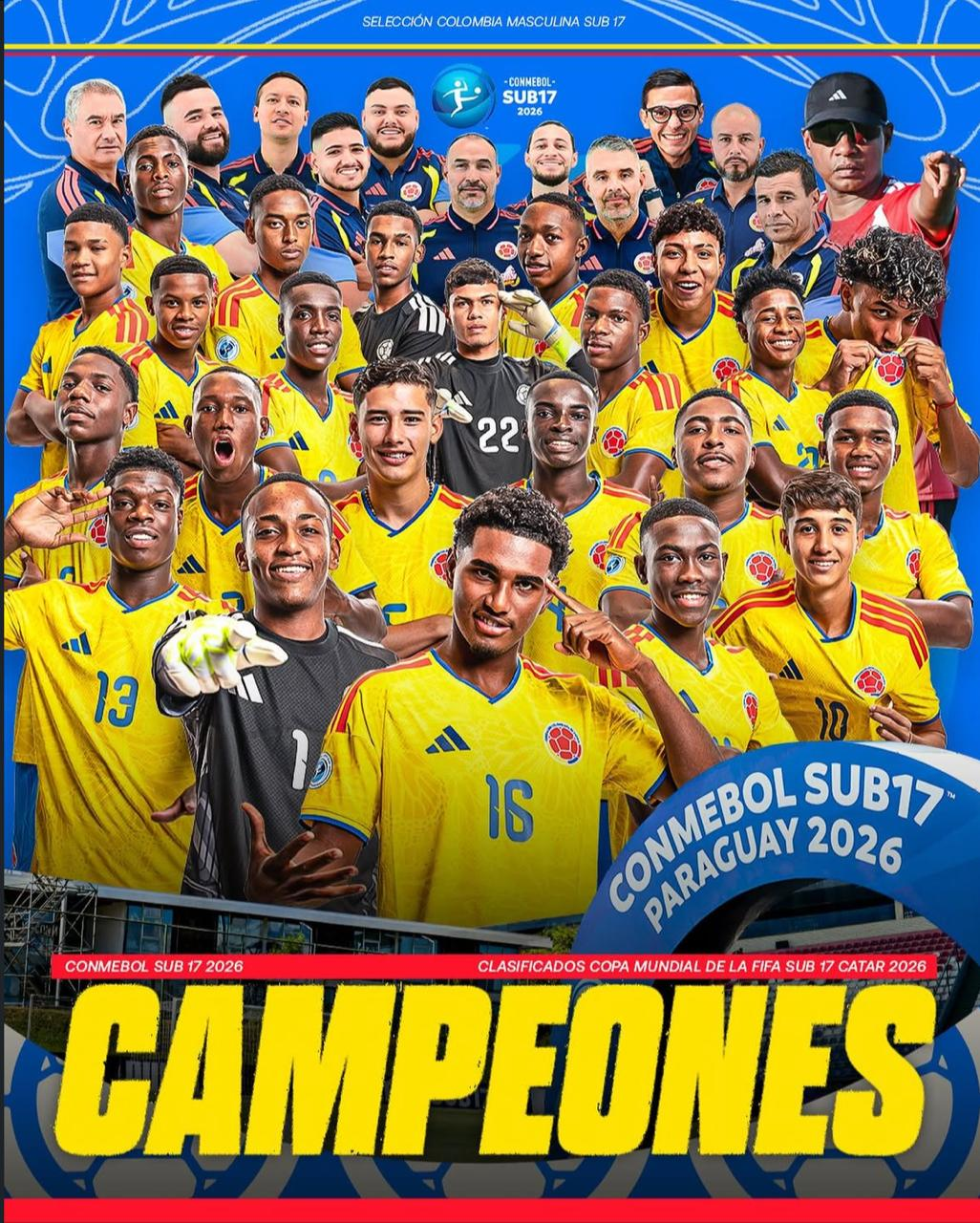La Selección Colombia Sub-17 volvió a hacer historia. Este 2026, el equipo se consagró campeón del Sudamericano Sub-17 disputado en Paraguay luego de vencer con autoridad 4-0 a la Selección Argentina Sub-17, asegurando además su clasificación al Mundial de la categoría en Qatar.
