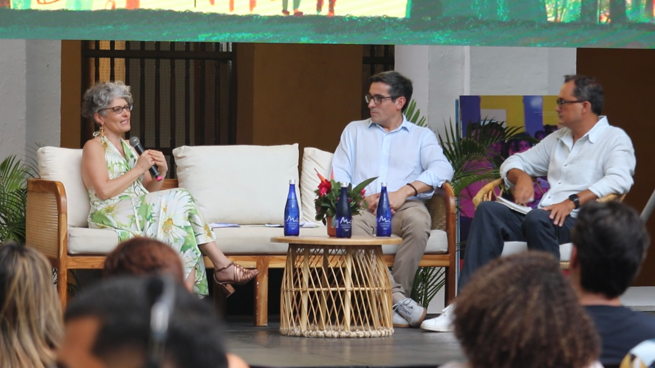 Posteriormente, se realizó un conversatorio alrededor de estos dos documentales, con la participación de Saia Vergara, viceministra de los Patrimonios, las Memorias y la Gobernanza Cultural del Ministerio de las Culturas de Colombia; Rodrigo Peñailillo, representante de CAF en Colombia; y Fernando Ehlers, funcionario y productor audiovisual de CAF, como moderador. En este espacio se plantearon preguntas relevantes sobre la realidad colombiana y su relación con los documentales, las problemáticas abordadas y cómo la cultura y el Estado apoyan, desde distintas formas, a estas poblaciones en la recuperación de la naturaleza y su estilo de vida. También se destacó la importancia de los festivales en Colombia para visibilizar a maestras y maestros portadores de tradiciones y acercar estos saberes a las nuevas generaciones, así como el papel de las comunidades en la protección de sus territorios, sus tradiciones y el rol de lo digital en este ámbito.