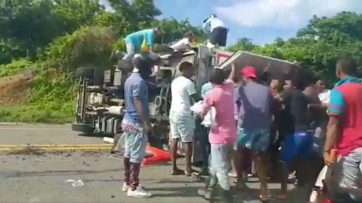 Este viernes, se registró un nuevo caso de saqueo a un camión accidentado. En un video, se registró a un grupo de habitantes de los poblados de Arroyo de Piedra y Arroyo Grande, saqueando un camión que transportaba pescado y minutos antes se había volcado en la vía que comunica a Barranquilla y Cartagena.