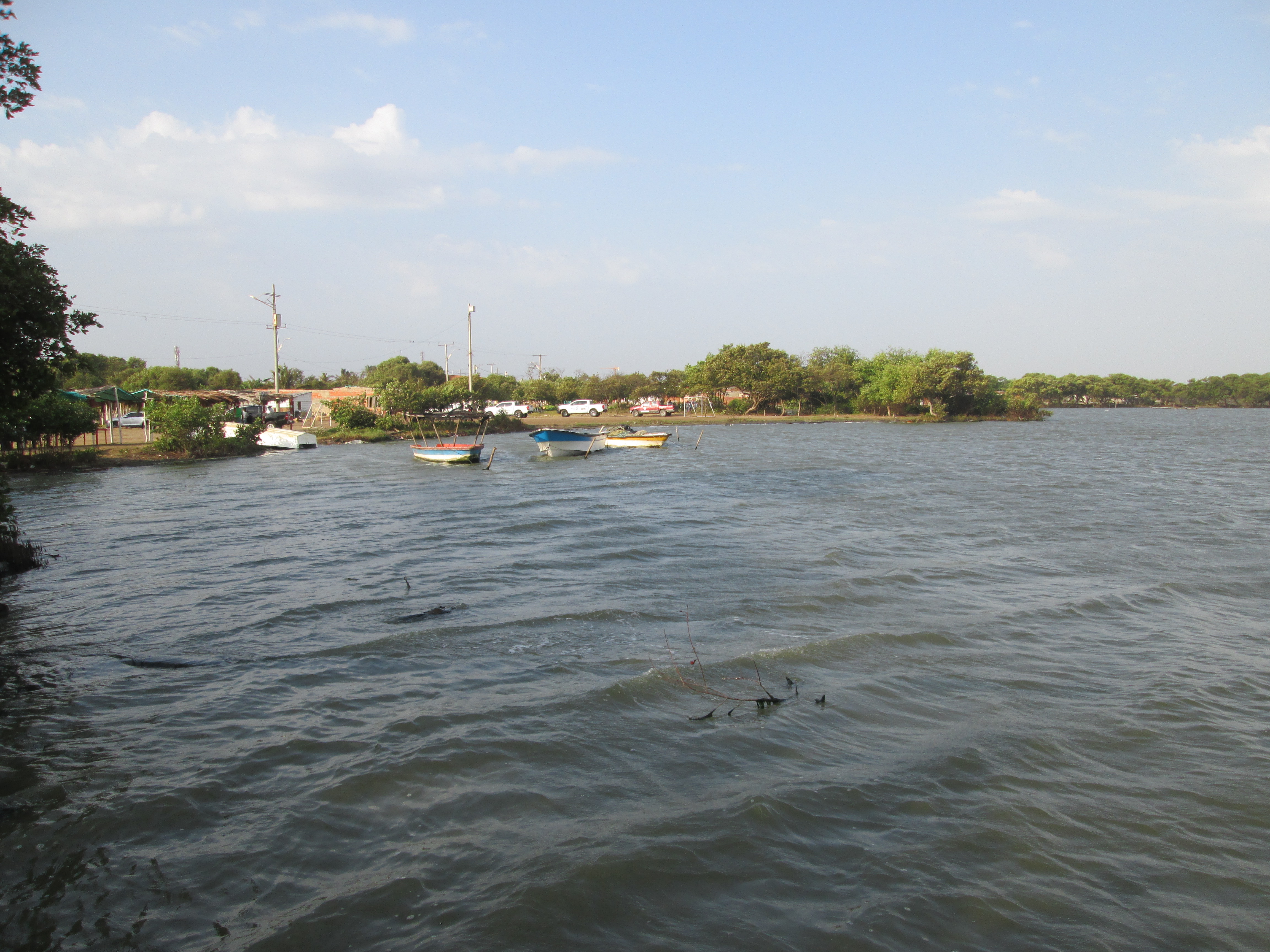 Vista a la comunidad desde la ciénaga de Mallorquín, y su zona manglárica.