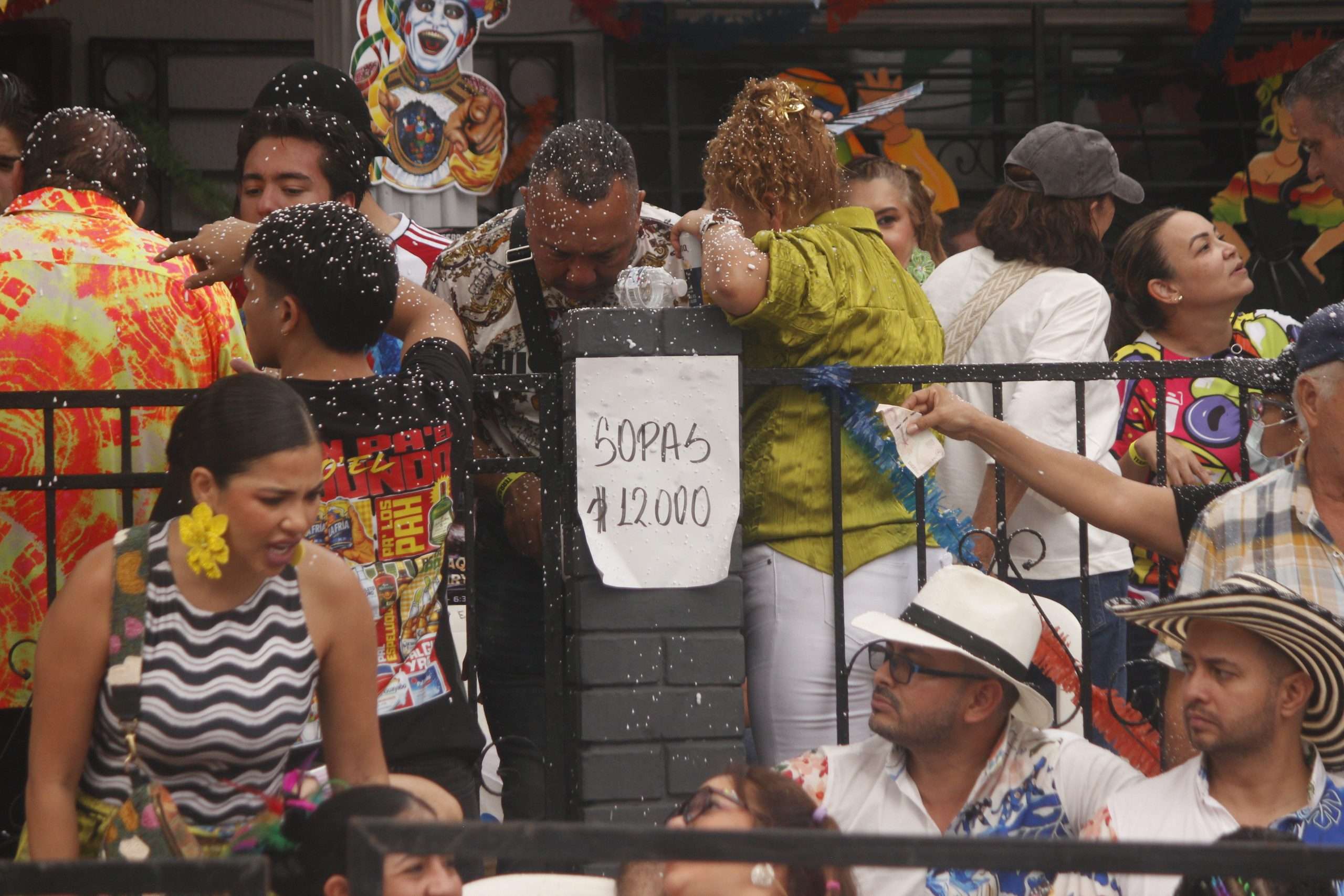 Ese colapso urbano dio paso a la economía informal del Carnaval. A lo largo de la carrera 44 aparecieron avisos improvisados: baños, cervezas frías, fritos, espuma. Usar un baño costaba alrededor de $1.000 pesos, una cerveza $5.000, un plato de comida callejera entre $6.000 y $15.000, y una lata de espuma a $7.000. La maizena comenzó a mezclarse con la espuma y el olor a comida con el de la cerveza y la marihuana, creando una atmósfera densa que anunciaba que la fiesta ya no era expectativa, sino realidad.