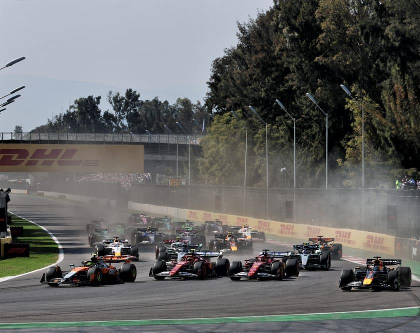 La largada fue tranquila para Lando Norris, pero no para el resto de los pilotos. Norris defendió su posición al llegar a la primera curva, mientras los pilotos de Ferrari, quienes largaban en segundo en tercer lugar, se alineaban por el centro y Max Verstappen intentaba atacar por el exterior. Cuatro autos llegaron en paralelo a la frenada tras los 830 metros de recta desde la salida.