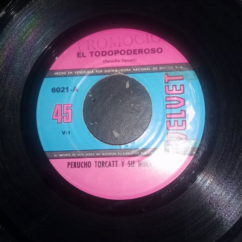 Incluso, Perucho había grabado ambas canciones con su propia voz, en el mismo ritmo salsero con el que se destacó en la agrupación ‘Los dementes’ de su amigo y paisano Ray Pérez.  El todopoderoso apareció en Venezuela en 1971, como cara A de un disco de 45 revoluciones por minuto cuya cara B era el tema La paz, autoría del mismo Torcat.