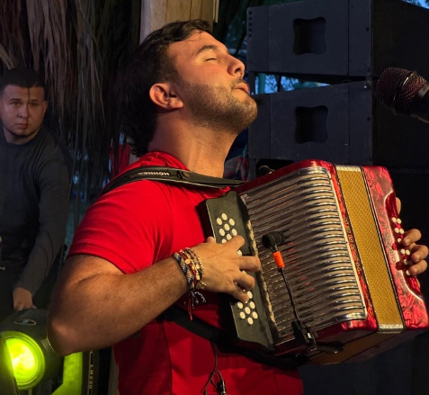 Durante 14 años jugó fútbol competitivo en escuelas de barrios, una etapa que le dio el carácter y la disciplina de la que goza hoy. Cuando tenía 12 años, luego de llegar de una de sus prácticas de futbol, se quedó observando a un vecino, que todas las tardes se sentaba en la terraza a tocar el acordeón.  Con un oído privilegiado y la guía del maestro “Chongo” Rivera, el acordeón se terminó convirtiendo en su refugio.