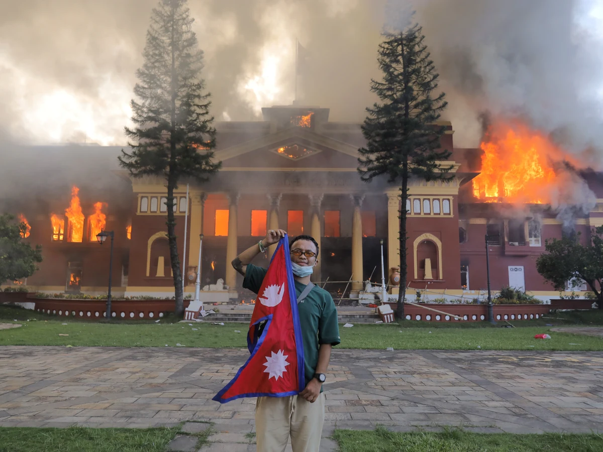 Ese mismo día, manifestantes irrumpieron en la oficina del primer ministro y en la sede del Parlamento de Nepal, prendiéndoles fuego. En Katmandú también atacaron la vivienda del ex primer ministro, donde su esposa perdió la vida debido a las graves heridas sufridas durante el asalto.
