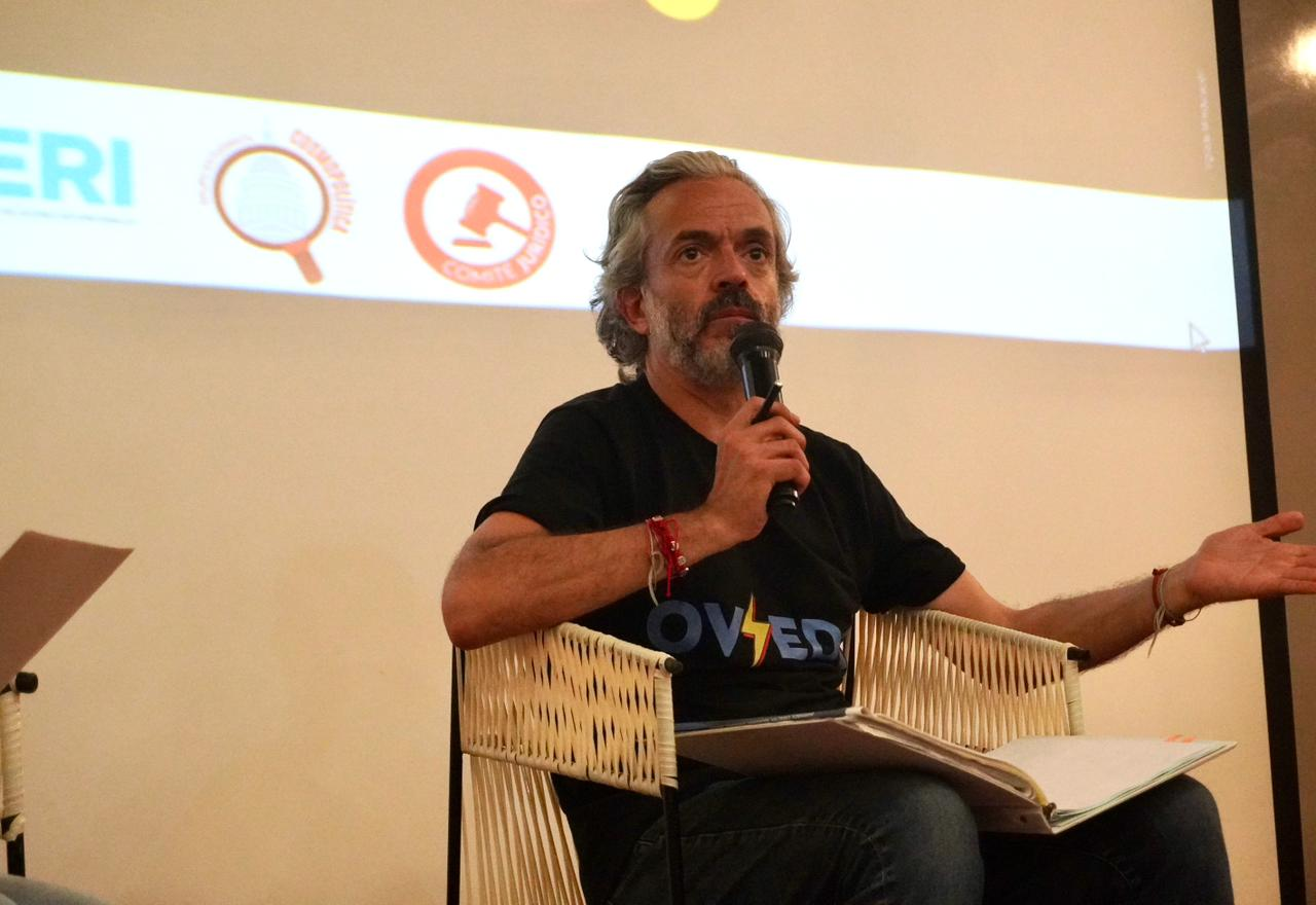 En ese mismo contexto, cuando un asistente concluyo su turno de proponer una pregunta para Oviedo que convenientemente era sobre el Ministerio de Igualdad un grupo de estudiantes alzo unas cartulinas que tenían un mensaje por cada una que eran: “Apoyas el genocidio, pero te juntas con sionistas”, “Las mujeres no son máquinas para parir” y “Oviedo es de centro, pero del centro democrático”. Cada una es una referencia y un reclamo hacia declaraciones o acciones hechas por el invitado.